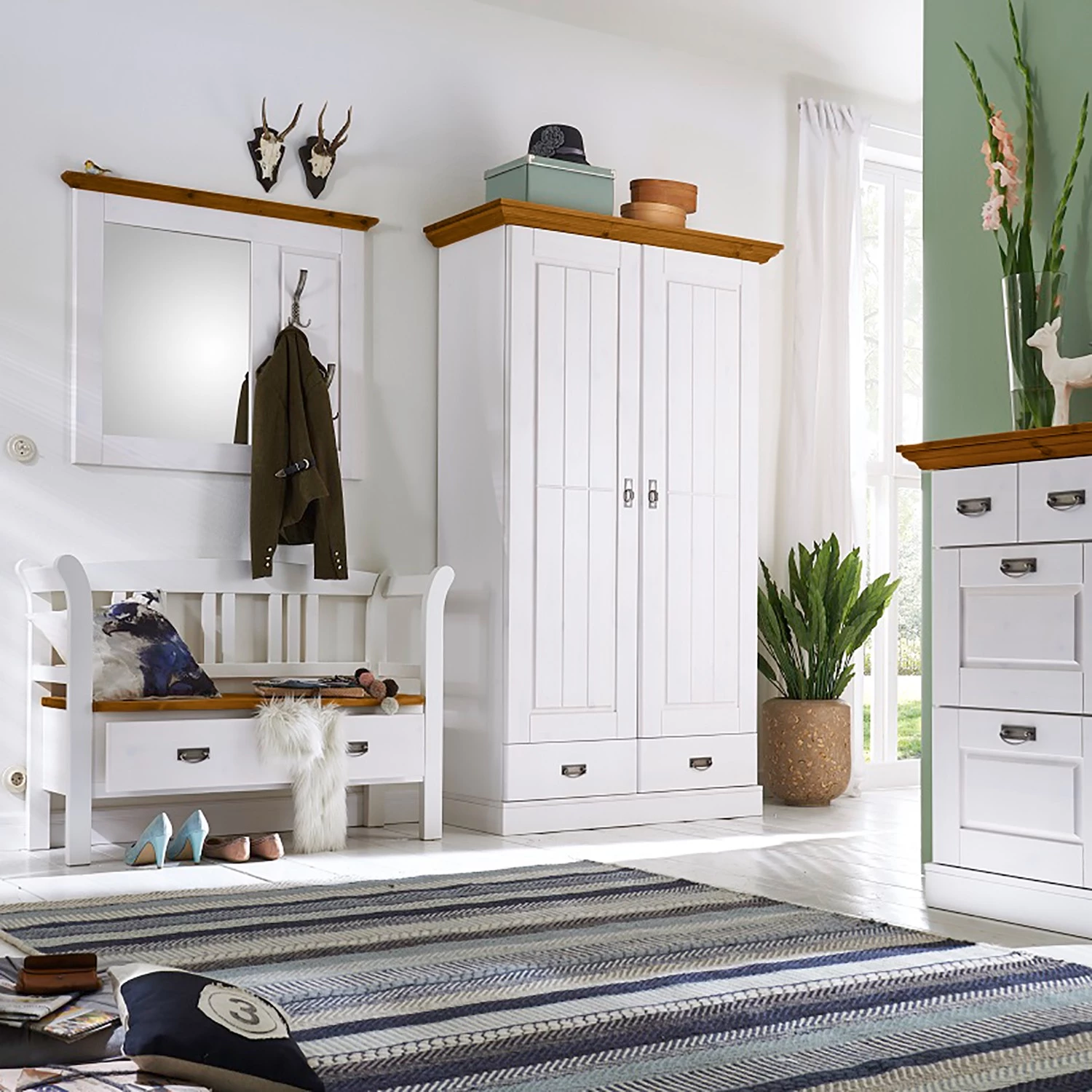 - Façade et corps : pin massif verni