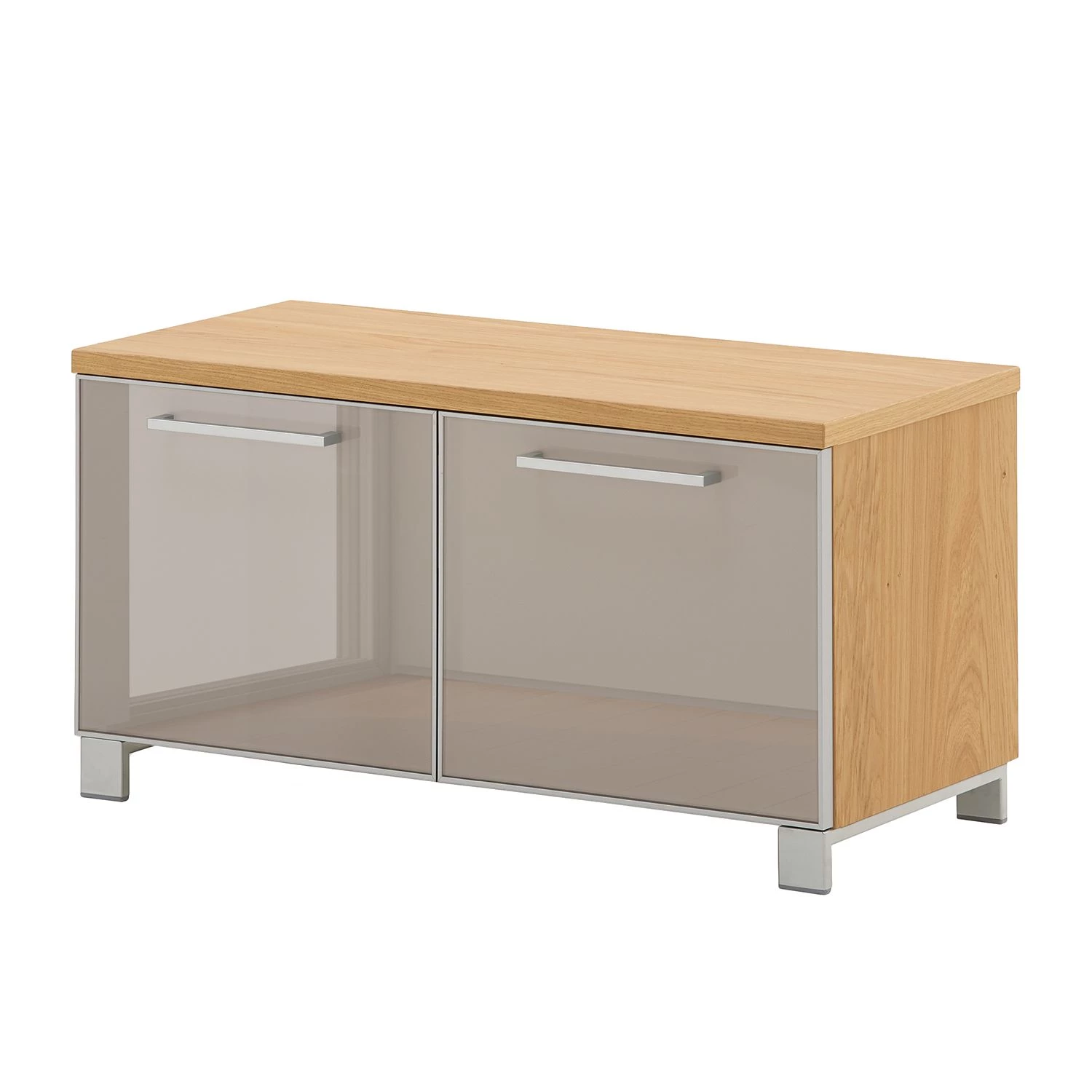 - 2 portes en verre, 1 étagère en bois